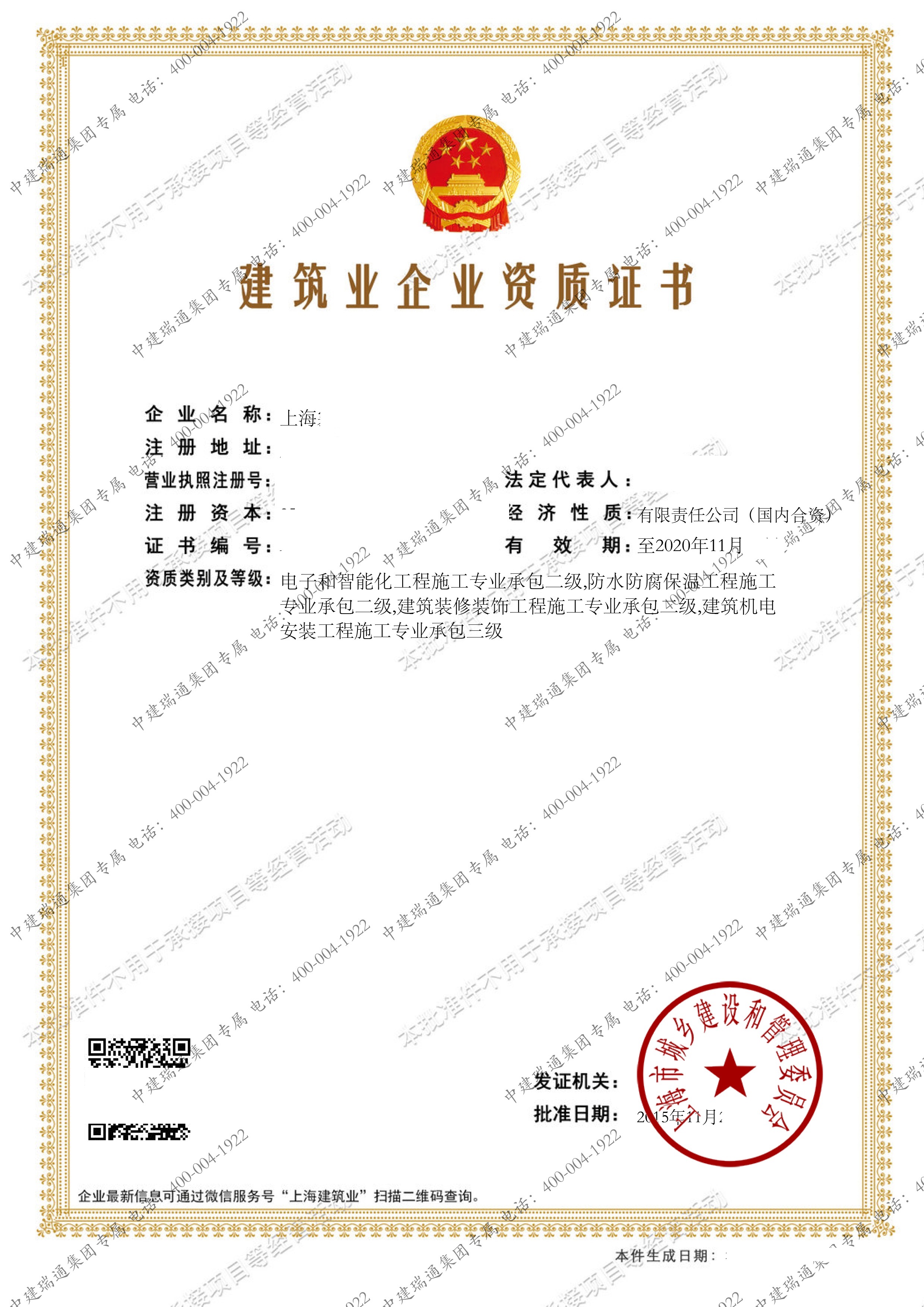 建筑企業施工資質、設計資質代理、人才獵聘、進滬備案、稅務籌劃就找中建瑞通資質指導中心